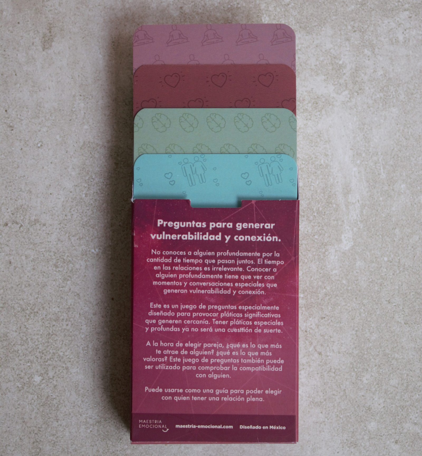 Este es un juego de preguntas especialmente diseñado para provocar pláticas significativas que generan cercanía. Tener pláticas profundas y especiales ya no será cuestión de suerte.